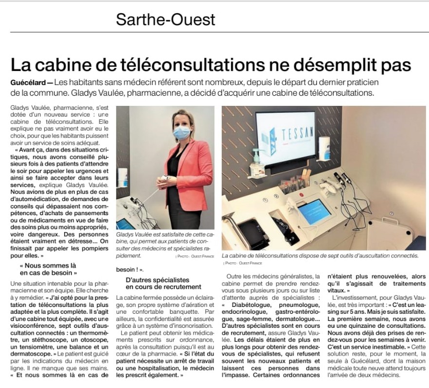 Localement, la pharmacie propose une cabine de téléconsultation.