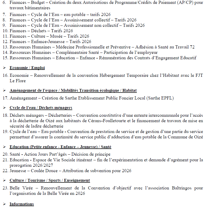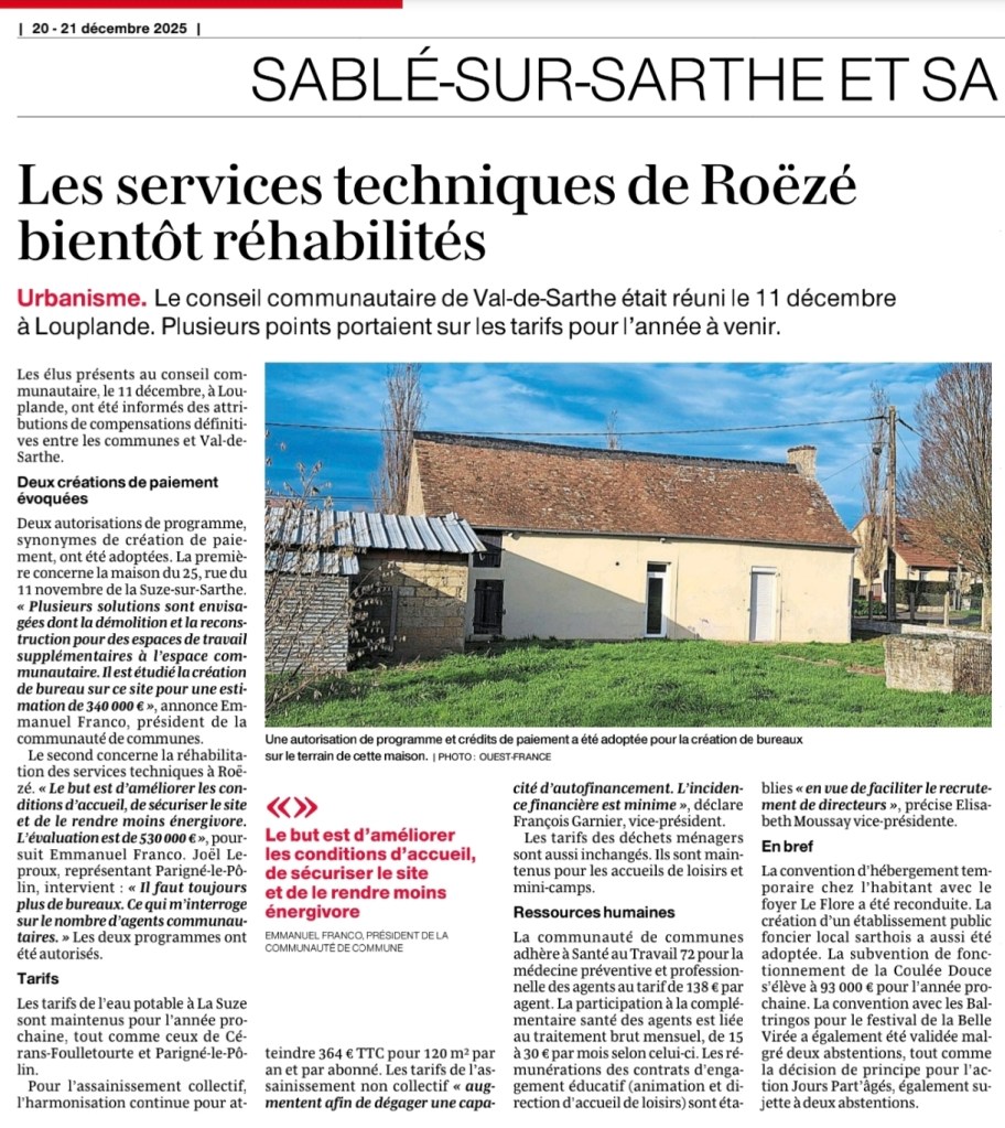 La réunion du conseil de la Communauté de Communes du Val de Sarthe s’est tenu salle du temps libre à Louplande, à 20h30, le jeudi 11 décembre 2025.