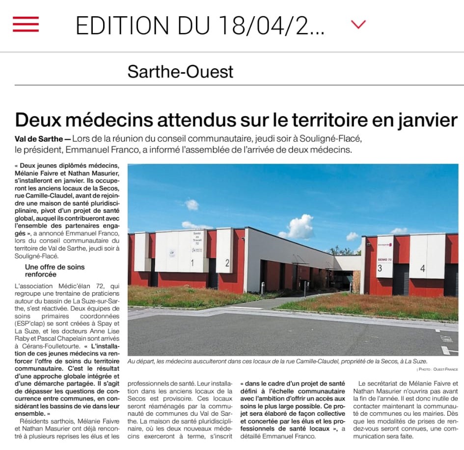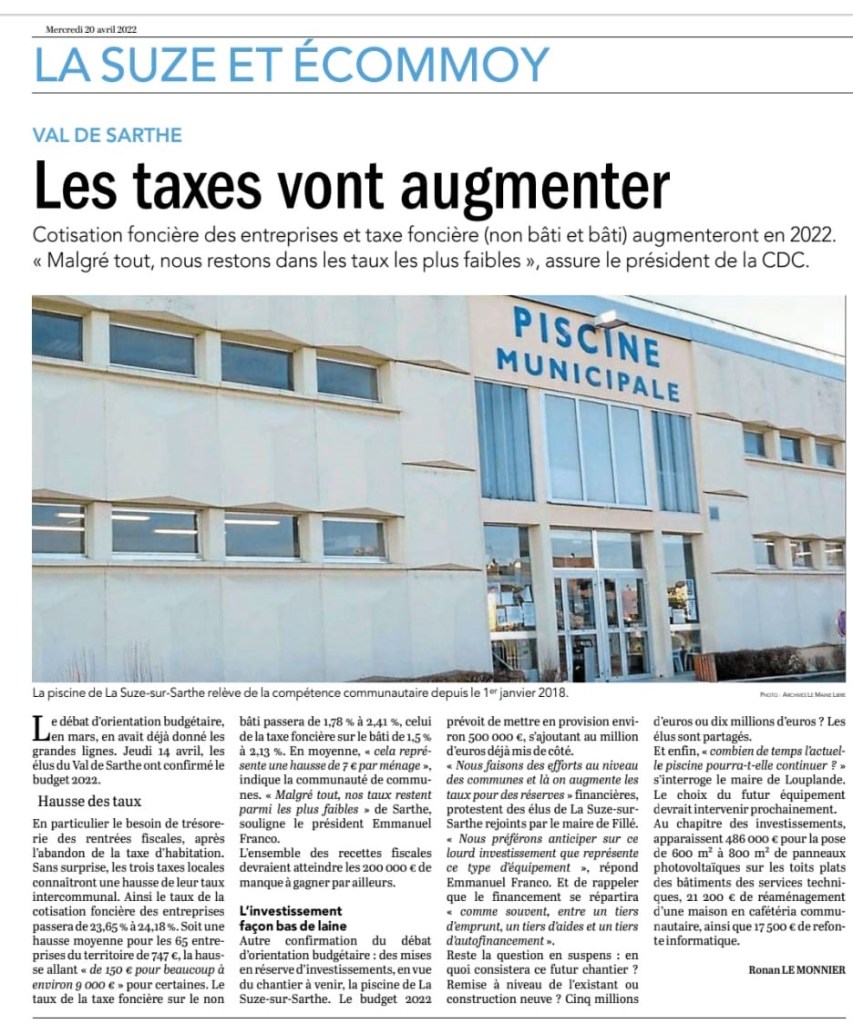 Le conseil de la Communauté de communes du Val de Sarthe s’est réuni le jeudi 14 avril 2022 à 20h30 à la salle des fêtes de Souligné Flacé.