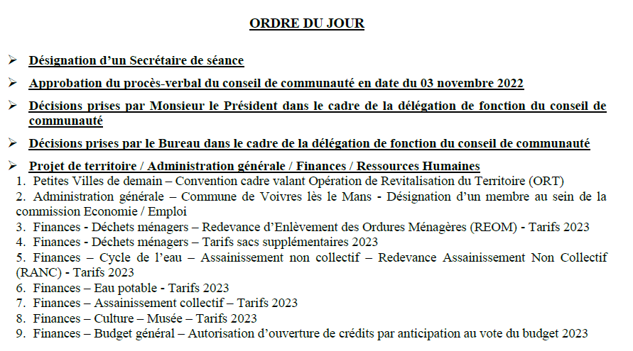 Le conseil de la Communauté de communes du Val de Sarthe s’est réuni le jeudi 15 décembre 2022 à 20h30 salle polyvalente à Etival.