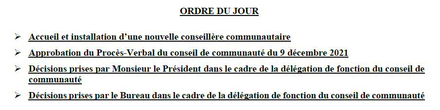 Le prochain Conseil Communautaire fixé le 17 mars sera consacré au projet de Territoire de la CC.