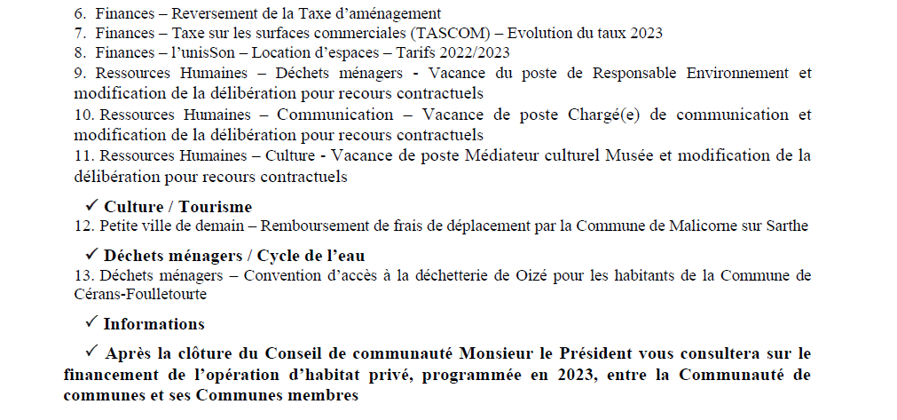 Vous retrouverez l’intégralité des débats dans le PV à paraître après validation lors du prochain conseil communautaire.