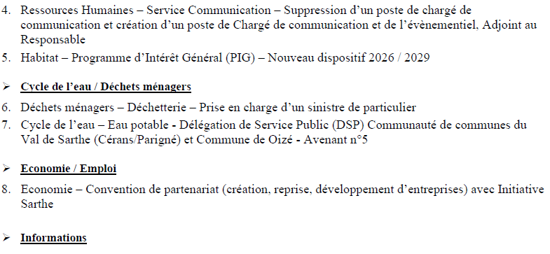 La réunion du conseil de la Communauté de Communes du Val de Sarthe se tiendra le jeudi 30 octobre à 20h30 à la salle des fêtes de Malicorne.