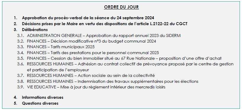 Le conseil municipal s’est réuni le mardi 12 novembre 2024 à 20h30 en mairie.