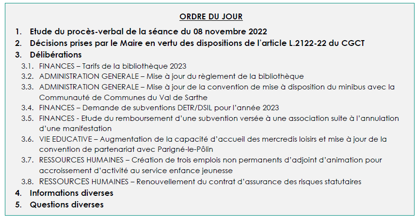 Le conseil municipal s’est réuni le mardi 6 décembre 2022 à 20h30 en mairie.