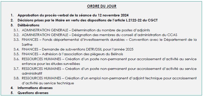Le conseil municipal s’est réuni le mardi 17 décembre 2024 à 20h30 en mairie.