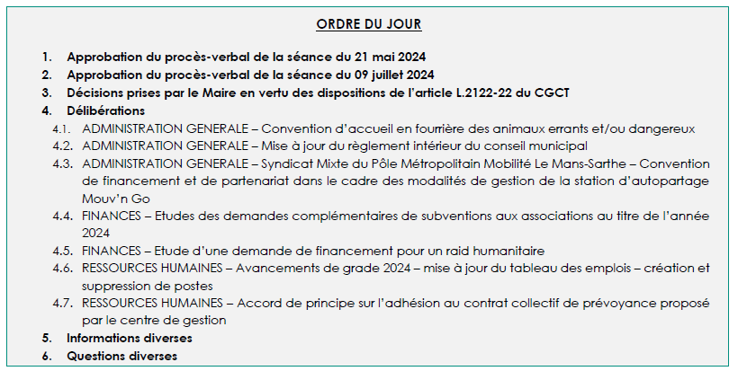 Le conseil municipal s’est tenu à la Mairie de Guécélard, le mardi 24 septembre 2024 à 20h30.