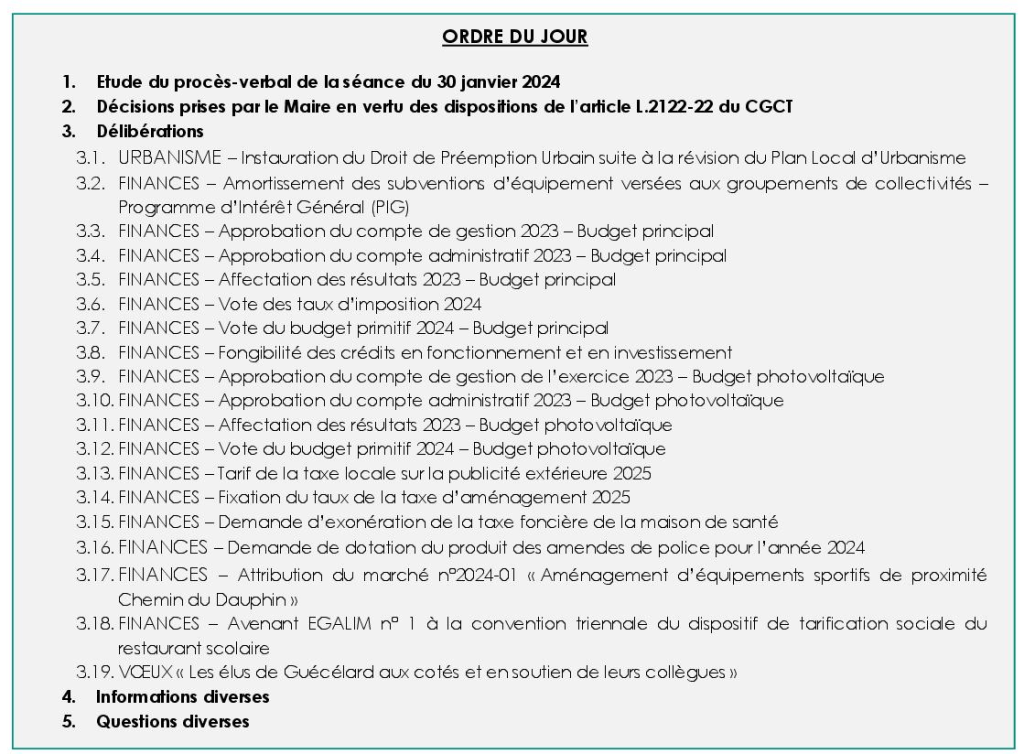 Le conseil municipal s’est réuni le mardi 26 mars 2024 2023 à 20h30 en mairie de Guécélard.