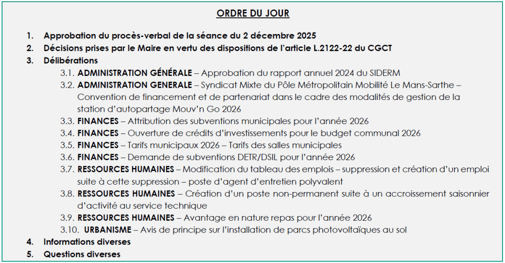 Le conseil municipal du 27 janvier 2026 Le conseil municipal se réunira le mardi 27 janvier 2026 à 20h30 en mairie. J’aime chargement…