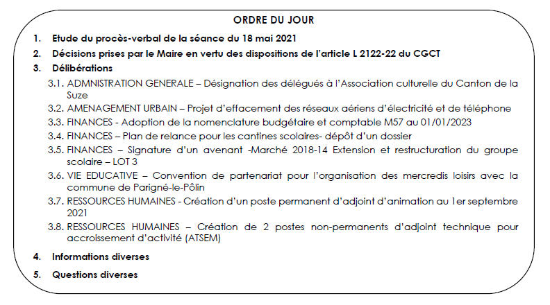 Le conseil municipal s’est réuni le mardi 29 juin 2021 à 20h30 à la salle des fêtes de Guécélard.