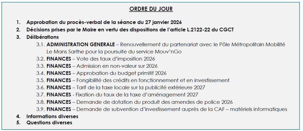 Le conseil municipal du 3 mars 2026 Le conseil municipal se réunira le mardi 3 mars 2026 à 20h30 en mairie J’aime chargement…